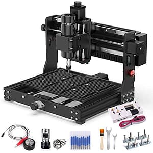 500W CNC Router Machine, MYSWEETY 3020 PLUS CNC Wood Router 3 Axis Desktop CNC Machine for Metal Wood Acrylic MDF with Limit Switches, Emergency-Stop, Working Area 300*200*73 mm(11.81*7.87*2.87 inch)
